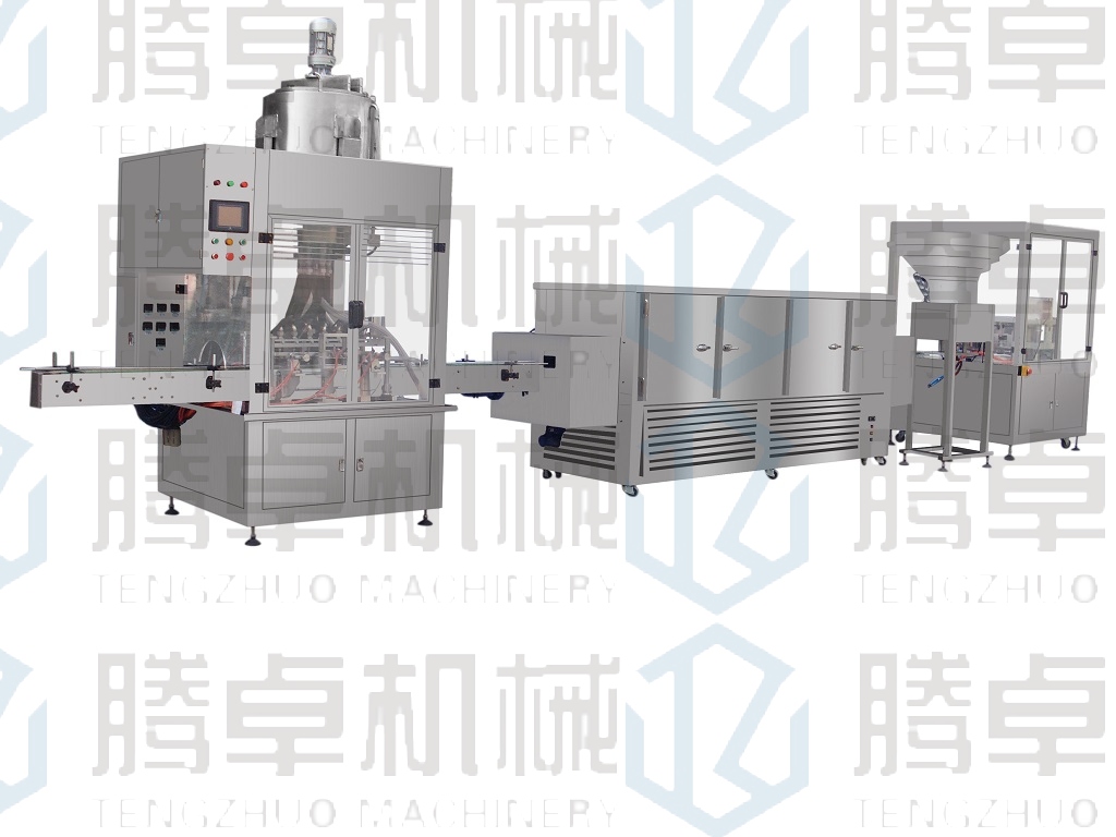 此生產(chǎn)線適合:發(fā)蠟,凡士林,巧克力,植物飲料等熱灌裝后需要馬上冷卻凝固的產(chǎn)品。